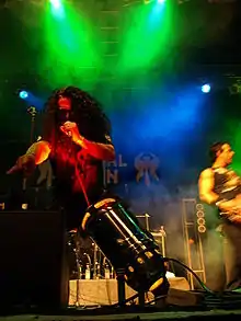 During the mid-1980s Sydney provided "two leading lights... [of] a small, but fervent underground thrash/speed metal scene", which were Mortal Sin and Slaughter Lord.[1] Mortal Sin were founded in 1985 by Wayne Campbell on drums, Paul Carwana on guitar, Andy Eftichiou on bass guitar, Keith Krstin on guitar and Mat Maurer on lead vocals.[1] Campbell attempted to recruit Maurer for his band, Wizzard, but his other members were reluctant to support the idea so the pair struck out on their own. They recruited Wizzard's Krstin, and Eftichiou from another band, Judge, and a second guitarist Neville Reynolds. Reynolds was fired for being unavailable for their debut gig and was replaced by Carwana.