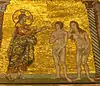 ![]() | God Reprimands Adam and Eve | Head of God and other parts of the bodies of Adam and Eve are reconstructed. |
