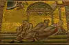 ![]() | Pharaoh's Dreams | It differs from the preceding scenes by a richer palette of colours, though this could be due to a different mosaicist, whilst its lively composition in almost pathetic tones may attribute them to the Master of the Maddalena (Pesenti, 1978–1979). The curtain over Pharaoh's bed is a late 19th-century restoration. |