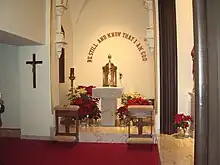 Right side of the church (from front to rear): Saint Catherine of Alexandria (Baptismal area), Saint Bridget of Sweden, Saint Patrick, Saint Catherine of Alexandria, Saint Peter, Saint Gertrude the Great, and Saint Philip.