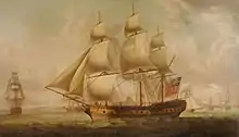 Cuffnells, an East India Company ship, at the Motherbank. (Painting The Cuffnells at the Mother Bank (1796) by Robert Dodd).
