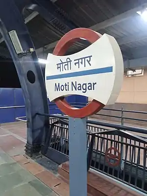 The Moti Nagar metro station is located on the Blue Line of the Delhi Metro.[3] It is very near to the famous "JhuleLal Mandir" in Moti Nagar (New Delhi).