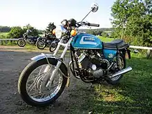 The 350 was conceived as a modular design, and single cylinder versions were made. (Looking like the V-twin with the rear cylinder removed) These were the 1975 six-speed 125 H and the 1978 250 T Mono, both unsuccessful, as was the later KJ 125 single of 1985.[13]