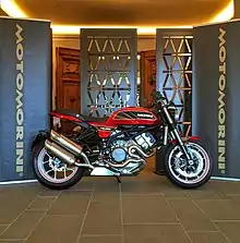 Earlier, Morini had also manufactured motorcycles together with Mario Mazzetti under the name MM. Moto Morini came under Cagiva control in 1987, then in 1996 joined Texas Pacific Group, which had also bought Ducati, and in April 1999, the rights to the name were purchased by Morini Franco Motori spa, a company which had been founded by Morini's nephew in 1954.[1] After building large v-twin motorcycles early in the 21st century the company went into liquidation in late 2010.[2] Moto Morini restarted motorcycle production in 2012.