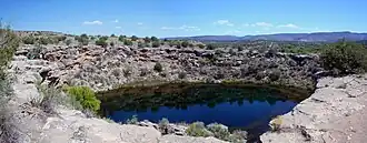 Montezuma Well, due to a high carbon dioxide level in the water, is unable to support a population of fish, leaving an ecological niche of predator-free open water. Although there are a number of species of invertebrates living in the well, the diet of M. montezuma consists almost entirely of the endemic amphipod Hyalella montezuma.[6]