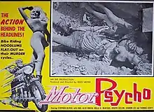 Motorpsycho or Motor Psycho is a 1965 film by Russ Meyer. Produced just before Meyer's better-known Faster, Pussycat! Kill! Kill! (1965), the film explores similar themes of sex and violence but focuses on a male motorcycle gang rather than the female gang of go-go dancers featured in the later film. Motorpsycho also contains one of the first portrayals of a disturbed Vietnam veteran character in film.