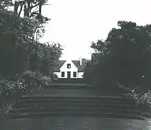 Noeline Baker (1878–1958), who was born in Christchurch, lived in England from 1896 to 1930. She returned to New Zealand to write her father's memoirs and spent time on Stewart Island.[1] According to her biographical entry in the Dictionary of New Zealand Biography, she purchased the 34.5 acres (14.0 ha) of land clad with bush and overlooking Halfmoon Bay at that time,[1] but during a speaking tour in Auckland in April 1940, she appeared to imply that her father purchased the land for her at her birth.[2][3] She had a homestead built in 1934–35 in a Dutch colonial style and called it Moturau Moana, which is Māori and means "islands of bush above the sea".[1][4] Baker drew inspiration from an acquaintance, British garden designer Gertrude Jekyll, and created a garden based on New Zealand flora. She used a list compiled by botanist Leonard Cockayne based on his 1907 visit to Stewart Island to grow all the island's indigenous plants in her garden.[1][5]