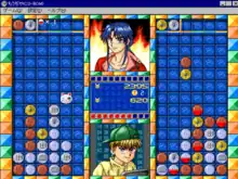 In 1996, Etona licensed Moujiya from Fujitsu and commissioned Racjin to make an arcade conversion.[2] This game, made from the ground up, featured a completely new cast of characters and different garbage block mechanics from the original, among other lesser changes.[8] Etona's version was then ported to the Sega Saturn and also to the PlayStation shortly thereafter, with the publishing being handled by Virgin Interactive Entertainment.[6] In 1999, Hect would snatch up publishing rights for the PlayStation version and rerelease it under their Honkakuha de ¥1,300 Series budget label.[5]