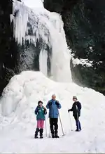 In winters that are very cold and snowy, Moul Falls builds a giant ice cone which sometimes stretches from top to bottom. The best access is using snowshoes. Cross-country skiers with expert skills can get to the falls, but the trail has several steep downhill sections.