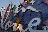Moulin Rouge sign at the Neon Museum rearranged to read "in love" (2017)