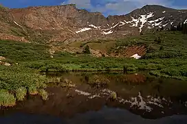 ![]() Reflections of Mount Bierstadt (right) and The Sawtooth (left) | |