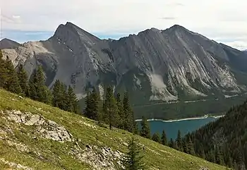 - ↑ Canmore and Kananaskis Village (Map). 1:50,000. Gem Trek Publishing. 1998. § D2. ISBN 1-895526-22-1. Retrieved 2019-08-25.