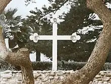 At the appointed time I broke ground for the building. All helped to excavate for the cross, which was set by Wm. Patterson. Mrs. Heindel planted the rose, which was then watered by all present. May it grow, may it bloom, to adorn the nakedness of the cross and be an inspiration to purity of life that will cover all past sins, no matter how dark the life may have been.[2]