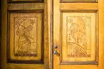 The columns fuse Greek (Ionic, Doric and Corinthian) and Roman (Tuscan and composite) styles, each one with a capital crowned by a finial globe. There are three steps between the columns leading to the Temple entrance. At the Temple entrance there are two square pilasters, each showing two faces. The round 12-sided building architecture is composed by round arches and narrow round inward windows. Its great dome is composed by a cupola crowned by a golden globe with a finial of lights. The inner portal and the Temple's interior is ornamented with alchemical and astrological symbols. It is a solar temple dedicated to the coming Age of Aquarius.