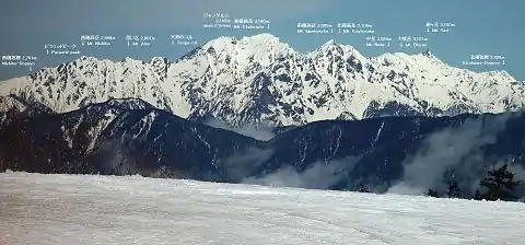 - ↑ Northern Japanese Alps. (in Japanese) Northern Japanese Alps Koya Yūkō-kai. Accessed June 28, 2008.