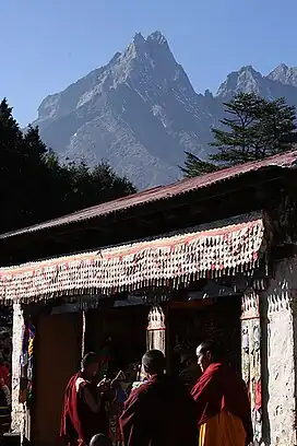 Khumbila or Khumbu Yül-Lha, roughly translated as "God of Khumbu" is one of the high Himalayan peaks in the Khumbu region of Eastern Nepal within the boundaries of Sagarmatha National Park. Considered too sacred to be climbed by most local Sherpa people, the mountain is considered home to the patron God of the local area.[1] Rising 5,761m above sea level, the mountain overlooks the famous southern approaches to its larger neighbours including Ama Dablam and Mount Everest.