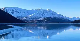 Mount Madson is located on the Kenai Peninsula on land managed by Chugach National Forest. It is set 24 miles (39 km) north of the city of Seward in the Kenai Mountains.[1] Precipitation runoff from the mountain drains into the Kenai River drainage basin. Although modest in elevation, topographic relief is significant as the summit rises 3,800 feet (1,158 m) above Crescent Lake in 1.4 mile (2.25 km) and 4,830 feet (1,472 m) above Kenai Lake in 3.25 miles (5.23 km). Madson's local name was reported in 1909 by geologists Grant and Higgins, then officially adopted in 1910 by the U.S. Board on Geographic Names.[1][4] John Madson was a prospector who (with William Fairman) had mineral claims at Quartz Creek northwest of the mountain.[5][6]
