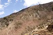 Mount Maku (Japanese: 幕山 = Maku-Yama) is a mountain with the height of 626 meters,located in Yugawara, Kanagawa, Japan. It is a volcanic lava dome that formed about 150,000 years ago in the older rim of Mount Hakone. Its name "Maku", meaning a curtain, is said to come from the rock walls of columnar joints that surround the mountainside, alluding to the Kabuki theater stage.
