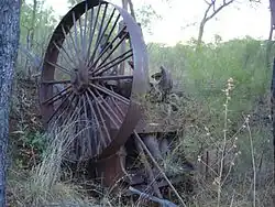 Mount Moran Battery is situated on a sloping ridge above the seasonally active Agate Creek, west of Forsayth. The isolated five head stamp battery was erected in 1924 to crush ore won from the three reefs worked in the area - the Mona, Iona and Bosker.[1]