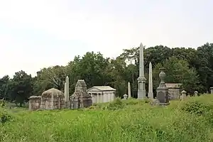 - ↑ Christopher, Matthew. "Mount Moriah Cemetery". www.abandonedamerica.us. Retrieved 23 August 2019.