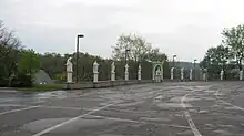 Once the church and rectory had been completed, the workers began to envision a plaza. The area that was to become the oval was still occupied by the mansion that was on the Mt. St. Peter grounds. With the permission of the Chancery Office of the Diocese of Pittsburgh, the mansion was demolished and only a few of the fixtures were removed by the church prior to the demolition.[43]