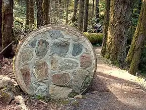 A pipe segment of the Sooke Flowline cut out for the trail up the mountain.