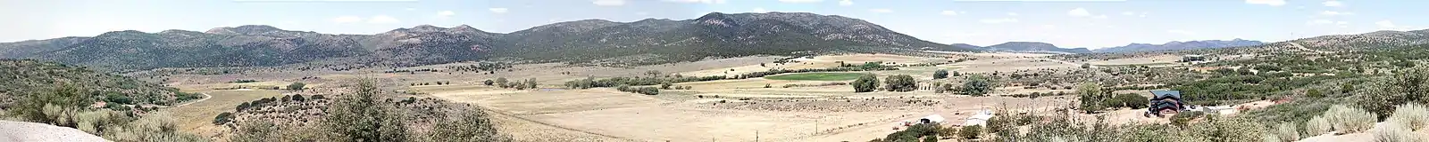 The Baker–Fancher party was refused stocks in Salt Lake City and chose to leave there and take the Old Spanish Trail, which passed through southern Utah.[11] In August 1857, the Mormon apostle George A. Smith traveled throughout the southern part of the territory instructing the settlers to stockpile grain.[12] While on his return trip to Salt Lake City, Smith camped near the Baker–Fancher party on August 25, 1857 at Corn Creek. They had traveled the 165 miles (266 km) south from Salt Lake City, and Jacob Hamblin suggested that the wagon train continue on the trail and rest their cattle at Mountain Meadows, which had good pasture and was adjacent to his homestead.[13]