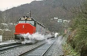 The Mountaineer was a passenger train operated by Amtrak between Norfolk, Virginia, and Chicago, Illinois, via Cincinnati, Ohio. It was the first train to use the Norfolk and Western Railway's tracks since the creation of Amtrak in 1971[1]: 248 and followed the route of the Pocahontas, the N&W's last passenger train. Service began in 1975 and ended in 1977. A new train, the Hilltopper, operated over much of the Mountaineer's route but was itself discontinued in 1979.[2]: 72–74