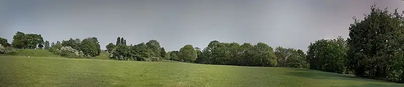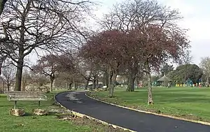 Over time, the park was substantially enlarged, with land bought from the School Board for London and further allotment land acquired. An area used for a short time as a football ground by Charlton Athletic FC was added to the park in 1923/4. A bombed row of houses in George Lane was added after World War II and a further tranche of land formerly used as playing fields by Catford Boys School in Brownhill Road was added in 1994.[1][2]
