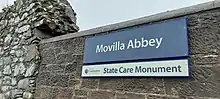 Movilla Abbey (Irish: Mainistir Mhaigh Bhile "Monastery of the Plain of the Notable Tree") in Newtownards, County Down, Northern Ireland, is believed to have been one of Ulster's and Ireland's most important monasteries. Movilla should not be confused with Moville in County Donegal.