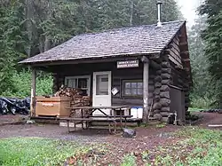 The cabin serves as a cache point for hikers on the Wonderland Trail.[2]