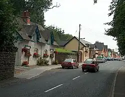 The village was built by the grandson of James Farrell who purchased the lands of Moynalty and its hinterland in 1790. That grandson John Arthur completed the building of Moynalty Village in 1837 and it is to some extent based on a Swiss design. The village was built on one side only earning it the saying "All To One Side Like The Village Of Moynalty".[2] It was only after 1900 that houses were built on the river side of the village.