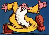 Crumb's bearded guru is too unapologetic to be called a con man. Despite his renunciation of the material world, he is an unrepentant sybarite. His straight talk, while refreshing, can get him into trouble, as when he was kicked out of heaven for telling God it is "a little corny" in "Mr. Natural Meets God".[5] But he may be the only Crumb creation who is genuinely likable.[6] Mr. Natural's advice is seemingly at odds with his image as a sage, and his inventions are at once brilliant and crackpot.[7] Perhaps Mr. Natural's most famous aphorism is, "Mr. Natural sez, Use the right tool for the job" — spoken on seeing Flakey Foont unloading a truck full of bowling balls with a pitchfork. Asked, "What does it all mean?", he responds, "Don't mean sheeit..."[8]