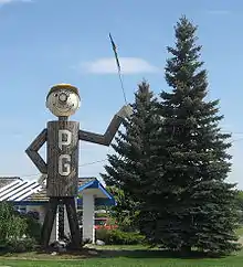 Mr. PG is a mascot for and monument in Prince George, British Columbia.[1] He was first constructed in 1960 as a symbol of the importance of the forestry industry to the city.[2] He currently stands at the junction of Highway 97 and Highway 16. He is 8.138 m (26.70 ft) tall and his head is 1.5 m (4 ft 11 in) in diameter.[3][4] The original was constructed out of wood but the current replacement is made mostly of painted metal. For both versions his head was, and is currently, fabricated from a spherical plastic septic tank.