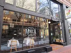 Mucca Osteria is an Italian restaurant in downtown Portland. Fodor's describes the restaurant as a "narrow, bi-level space with exposed-brick walls, rustic chandeliers, and tall windows overlooking a busy downtown space".[1] The Oregonian's Michael Russell said "the decor leans suburban, its brick walls hung with ornate mirrors and a sepia-tinted map of Italy; the mezzanine overlooking chandeliers like large metal atoms".[2]