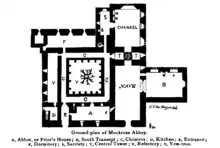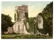 It has had a violent history and has been damaged and reconstructed many times. The friars were often subjected to raids by marauding groups and were persecuted by Cromwellian forces under Lord Ludlow.[2] Today the abbey is largely roofless but is otherwise generally quite well-preserved. Its most striking feature is a central courtyard, which contains a large yew tree and is surrounded by a vaulted cloister.[3]