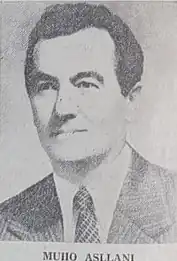 Muho Asllani (born 17 October 1937)[1][2] is a former Albanian politician of the Albanian Party of Labour (PPSh). He was a member of the Politburo, a representative in the Albanian Parliament for many years, First Secretary of Party in several districts, and member of the Cabinet of Albania during 1976–79.