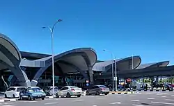 The entrance of the terminal is adorned with Sarawakian motives.
