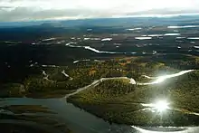 The Mulchatna River (Dena'ina: Vałts'atnaq') is a 160-mile (260 km) tributary of the Nushagak River in the U.S. state of Alaska.[3] Beginning at Turquoise Lake, it flows generally southwest to meet the larger river 65 miles (105 km) northeast of Dillingham.[1] The Mulchatna's mouth is slightly south (downstream) of the village of Koliganek on the Nushagak, which continues southwest to Nushagak Bay, an arm of Bristol Bay.[4]