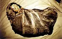 ![]() Mummy Juanita's body before unwrapping of her bundle. | |