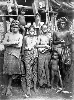 The Muna or Wuna are an indigenous group that inhabits Muna Island, Southeast Sulawesi, Indonesia. From the physical appearance of the body, skull, skin color (dark brown), and hair (curly or wavy) it appears that the aboriginal Muna people are closer to the ethnic groups of Polynesians and Melanesians in the Pacific and Aboriginal Australians compared to the Buginese or Malays. This is evident by the similarities of the people and their culture with of those in the East Nusa Tenggara, and the islands of Timor and Flores generally.[2] Woven sarong motifs found in East Nusa Tenggara and Muna Island share similar features such as horizontal lines with basic colors of yellow, green, red, and black.[3] The shape of their headwear also has a resemblance to each other. Since before until today, Muna fishermen often harvest sea cucumbers and go fishing up to the waters of Darwin, Australia in the Timor Sea. This has caused Muna fishermen to have been arrested several times in these waters by the Australian government.[4] These habits may probably indicate the existence of a traditional relationship between the Muna people with Aboriginal Australians.[2]