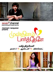 Mundhinam Paartheney (transl. Seen you the other day) is a 2010 Indian Tamil-language romantic comedy film written and directed by debutant director Magizh Thirumeni, starring Sanjay, Ekta Khosla, Lizna, Pooja B. and Sai Prashanth in the lead roles. The film, produced by Manickam Narayanan's Seventh Channel Communications, released on 19 March 2010 to moderate reviews.[1] The film was praised for the screenplay, flow of events and comedy.[2] The film's title is inspired by a song from Vaaranam Aayiram (2008).[3]