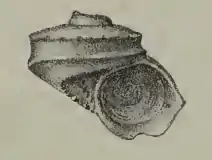 The height of this minute shell attains 0.75 mm and its diameter 0.50 mm. The delicate, white-gray shell has a depressed trochoidal shape and is deeply umbilicate. it contains 4 whorls. The nuclear whorls are slightly nepionic, and shapelessly turgid, but the penultimate and body whorl are very well sculptured and defined, being acutely spirally bicarinate. The aperture is round. The peristome is continuous. It is slightly thickened at the base around the umbilicus. Around the umbilicus, likewise, a third keel, crenulate, and not so acute, revolves. The dark red-brown operculum is multispiral with a not quite central nucleus. A pale straw-coloured epidermis covers the whole surface uniformly.[3]