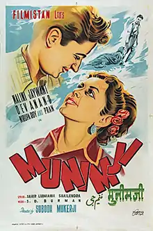 Munimji (transl. Clerk) is a 1955 Indian Hindi-language romantic comedy film starring Dev Anand and Nalini Jaywant, and directed by Subodh Mukherjee. The story idea was by Ranjan, screenplay was by Nasir Hussain and dialogues by Nasir Hussain and Qamar Jalalabadi. Pran played the villain in the film. It also starred Ameeta and Nirupa Roy. The team of Mukherjee, Nasir Hussain, Dev Anand and music director S.D. Burman later got together to produce another movie, Paying Guest, in 1957. The film was loosely adapted in Telugu as Inti Guttu (1958).[1]