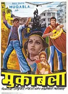 Muqabla (transl. Match) is 1979 Hindi-language action film directed by Rajkumar Kohli.[1] The film stars Sunil Dutt, Shatrughan Sinha, Reena Roy, Bindiya Goswami in lead roles. Rajesh Khanna, Rekha appear in special appearances in a qawwali song. The film was average in box office terms.[2] The song Govinda Govinda remains popular and even today is played on the festival of Janmmashtami in India.[3]