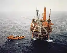 The Murchison oil field is located in the northern North Sea in the East Shetland Basin on the UK Continental Shelf. The field is situated 150 km north-east of Shetland and straddles the UK/Norwegian median line. It lies in UK Block 211/19 and extends into Norwegian Block 33/9.[1] The field is named after the Scottish geologist Sir Roderick Impey Murchison (1792–1871). Recoverable reserves were estimated to be 340 million barrels of oil out of a total oil-in-place of 790 million barrels. The field was developed through a large steel jacket platform standing in 156 m of water.[1] The peak production rate was 150,383 barrels of oil per day in December 1982.[1] Oil production was supported by gas and water injection. Production ceased in 2014 and the platform was removed in 2017.[2]