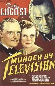 Murder by Television (1935) is an American mystery film starring Bela Lugosi, June Collyer, and Huntley Gordon. The film is also known as The Houghland Murder Case. The cast also includes Hattie McDaniel.