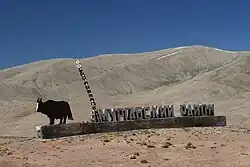 Murghob District (Tajik: Ноҳияи Мурғоб) is a district in Tajikistan, occupying the eastern two-thirds of the Gorno-Badakhshan Autonomous Region (GBAO). The area of Murghob District is 37,300 km2, covering 26 percent of Tajikistan's soil, but only 0.17% of its population.[3] Murghob District borders on Kyrgyzstan to the north, China to the east, and Afghanistan to the south.[4] The population of Murghob District is 15,900 (1 January 2020 estimate).[1] Its administrative capital is the village Murghob (also known as Murghab).