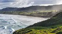 The Muriwai area is traditionally a part of rohe of the Tāmaki Māori tribe Te Kawerau ā Maki, known originally by the name One Rangatira ("The Chiefly Beach"),[6][7] referring to the tohunga Rakatāura's visit to the beach.[8] The beach has spiritual significance to Te Kawerau ā Maki, as it is a part of Te Rerenga Wairua, the pathway that souls take to Cape Reinga to depart the world.[6]