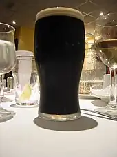It is brewed to be less heavy and less bitter than its chief competitor Guinness.[1][2] Its flavour is evocative of caramel and malt,[3] and is described as "a distant relative of chocolate milk".[1] The resemblance to milk extends beyond flavour to texture: Murphy's is free from any hint of carbonation,[1] and is delivered "black as strong cappuccino" with an inch of foam – the head – on top.[4] The water of the River Lee in Cork allegedly gave Murphy's its quality.